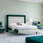 This bed features a sophisticated blend of soft green fabric paired with creamy neutral upholstery, creating a calm and elegant aesthetic. The contrast is subtle yet striking — perfect for homeowners who want a bed that’s stylish without being overwhelming.
