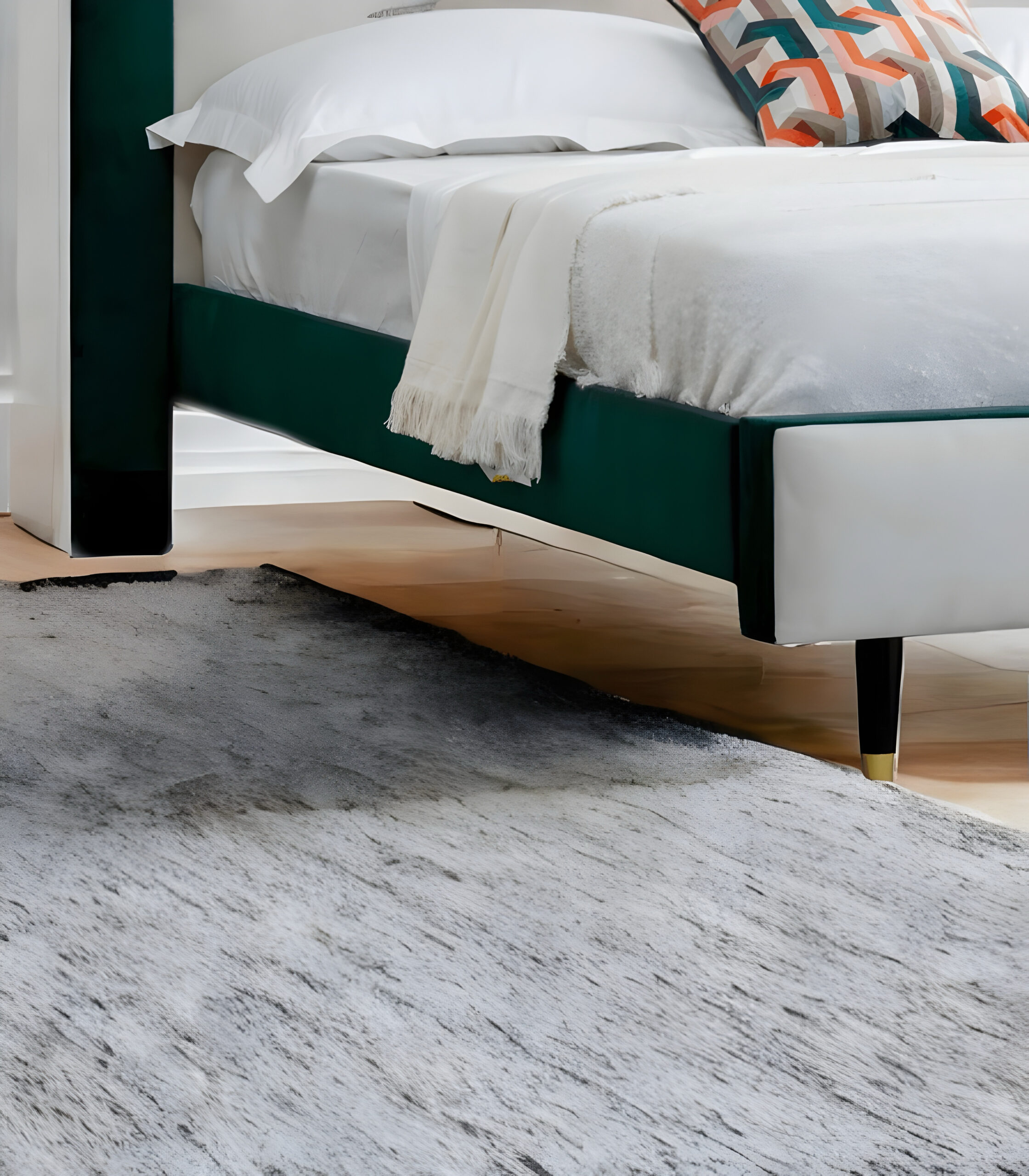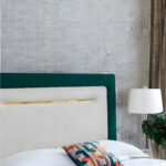 Slim legs with gold detailing elevate the design further, giving the bed a light, graceful appearance while maintaining stability. These golden touches add a refined sparkle that enhances the entire room.