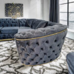• Gold Detailing: Striking gold finish on the base and legs enhances the sofaโ€™s presence and brings a contemporary, upscale feel to the overall design โ€” making it stand out as a premium statement piece.